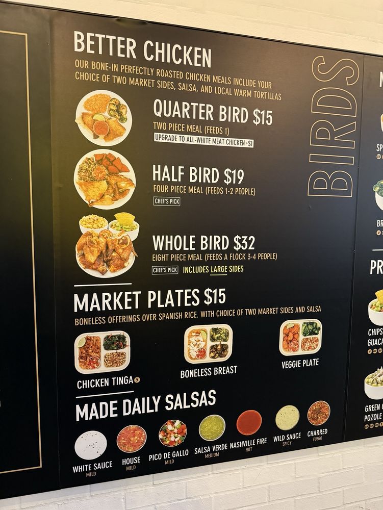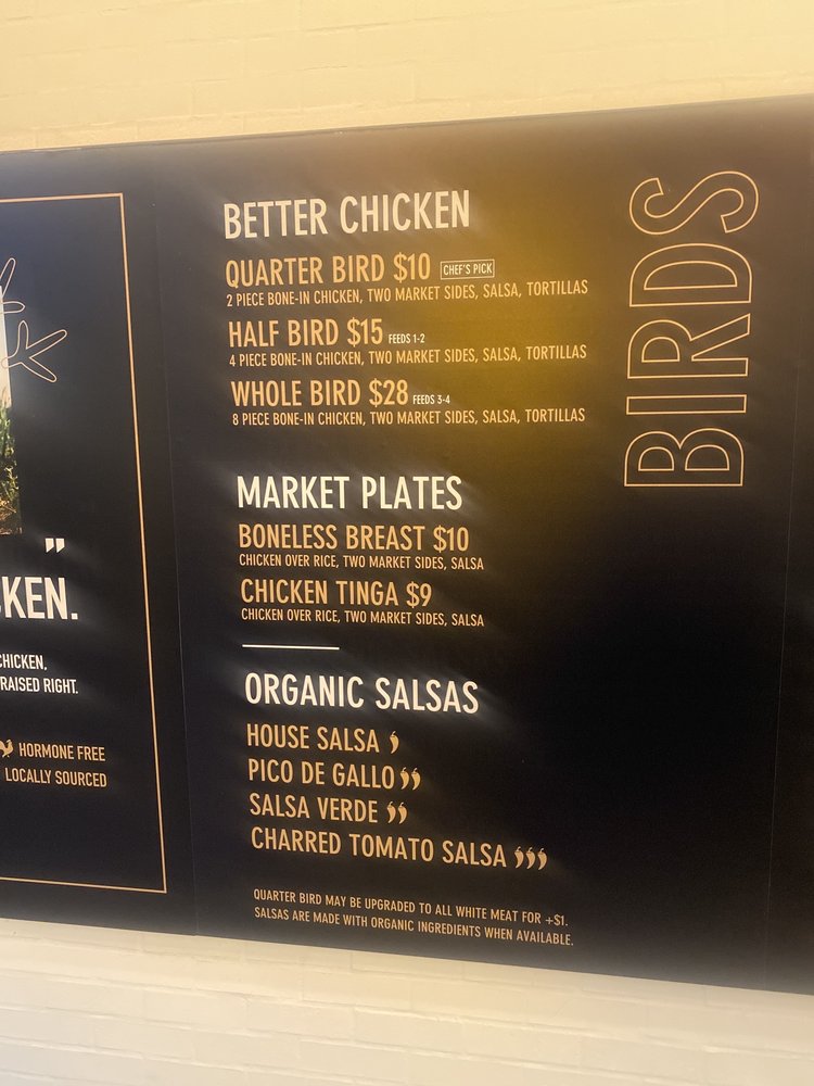 Introducing the menu at WILDBIRD, a chicken shop offering a mix of salads and Mexican dishes. Located in Los Angeles, WILDBIRD boasts a range of amenities such as delivery, takeout, and wheelchair accessibility. Customers rave about the delicious roasted chicken, fresh ingredients, and flavorful salsas. The clean and welcoming ambiance, friendly staff, and hormone-free, free-range chicken are highlighted by reviewers. Menu favorites include $2 tacos on Tuesdays, crispy chicken tacos, and the popular quarter chicken with unique side options like lime-seasoned broccoli. With a variety of sauce and side choices, WILDBIRD provides a healthy and satisfying dining experience. Don't miss out on this gem for a tasty, wholesome meal in a laid-back setting.